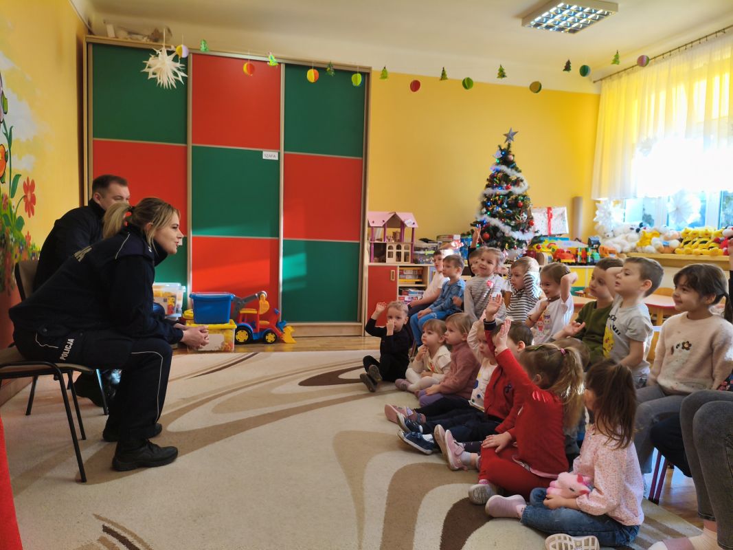 Przedszkolaki ubierają choinkę