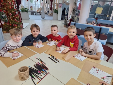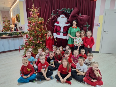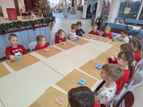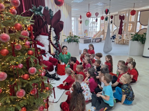 Przedszkolaki ubierają choinkę