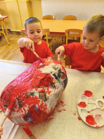 Przedszkolaki malują farbami