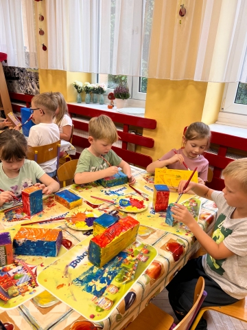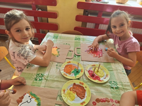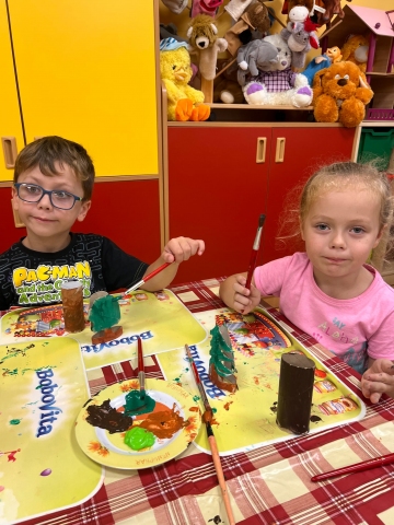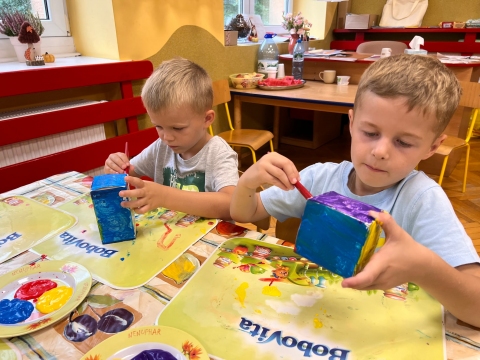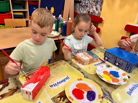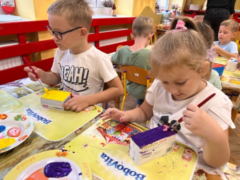 Przedszkolaki malują farbami