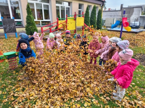 Zabawy z liśćmi w Muchomorach