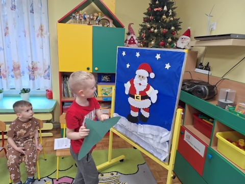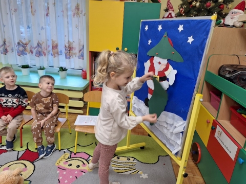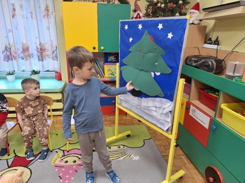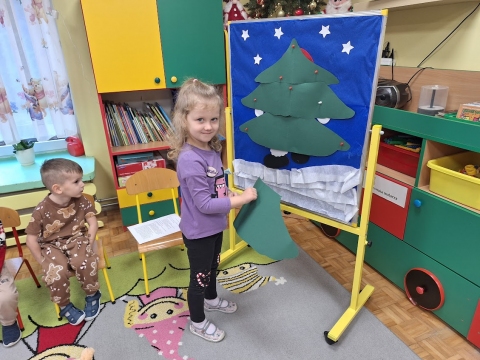 Przedszkolaki ubierają choinkę