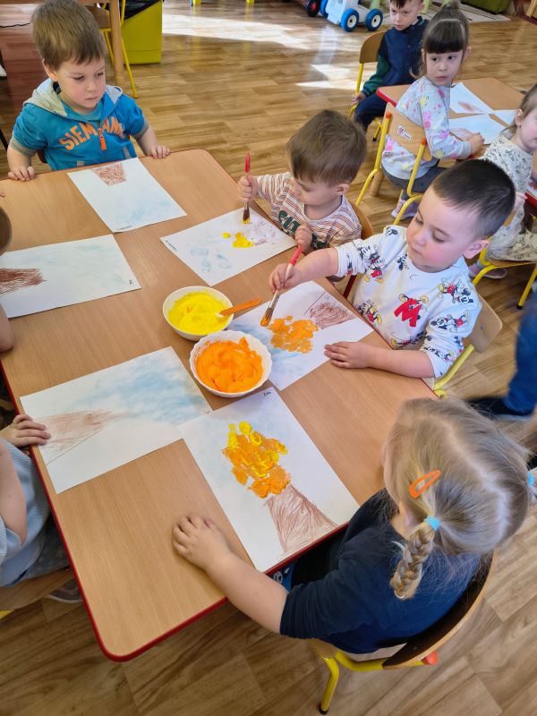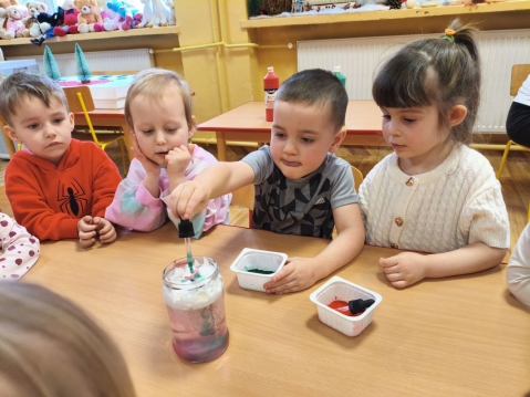 Przedszkolaki malują farbami