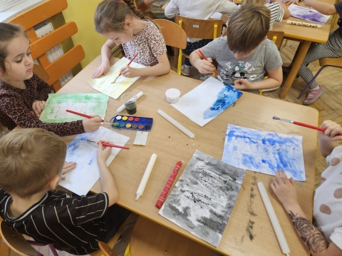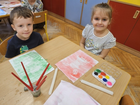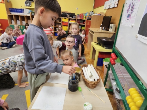 Przedszkolaki malują farbami