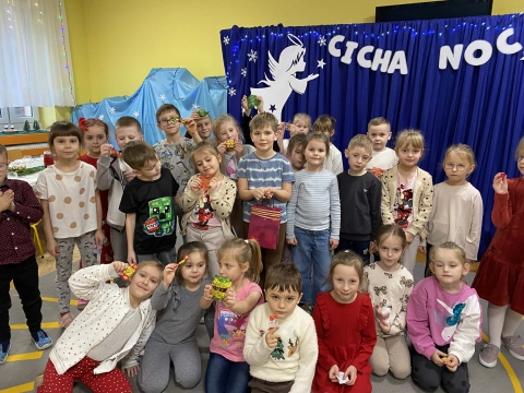 Przedszkolaki ubierają choinkę